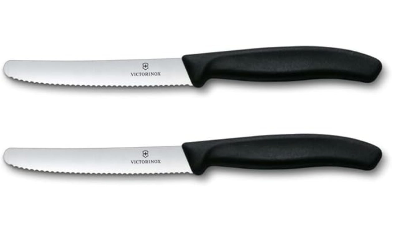 These cheap and cheerful Victorinox knifes are commonly used for tomatoes and bread rolls but they have proven themselves to be endlessly useful. They have yet to go blunt and when I was packing for a cooking weekend away I had to throw one into my knife roll.